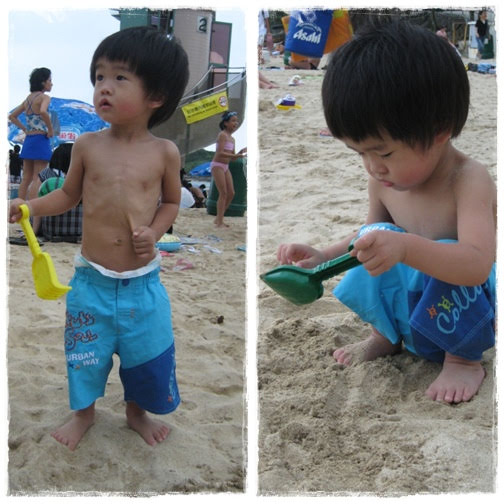 再次到臨清水灣, 哲哲不像上次亂來, 開始會用沙鏟玩沙, 不過還是原始地用手亂抓